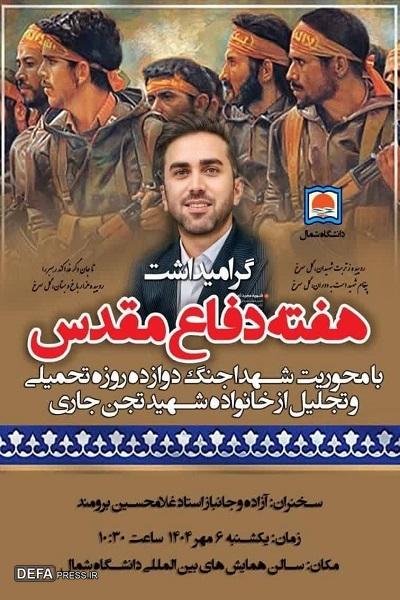 این مراسم از ساعت ۱۰:۳۰ صبح، در سالن همایش‌های بین المللی دانشگاه شمال و با سخنرانی آزاده و جانباز «غلامحسین برومند» همراه خواهد بود.