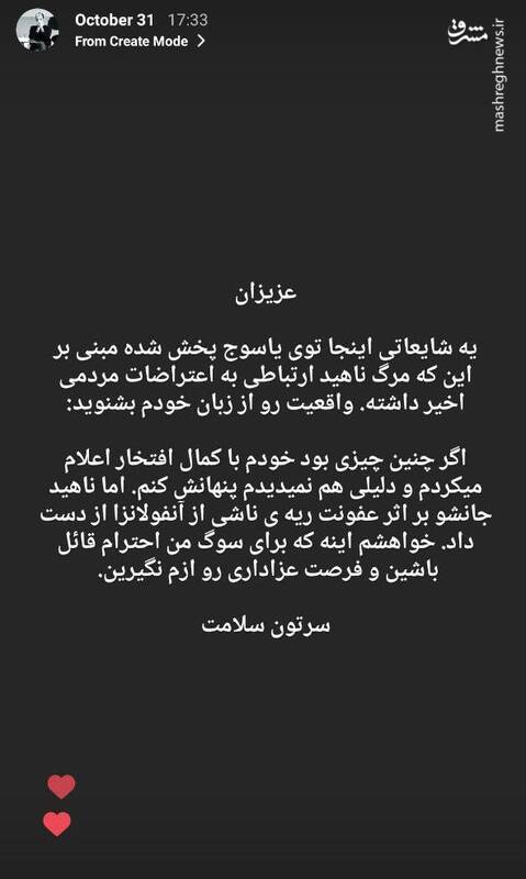 اما خبرش به دروغ با عنوان قربانی اعتراضات پخش شده.