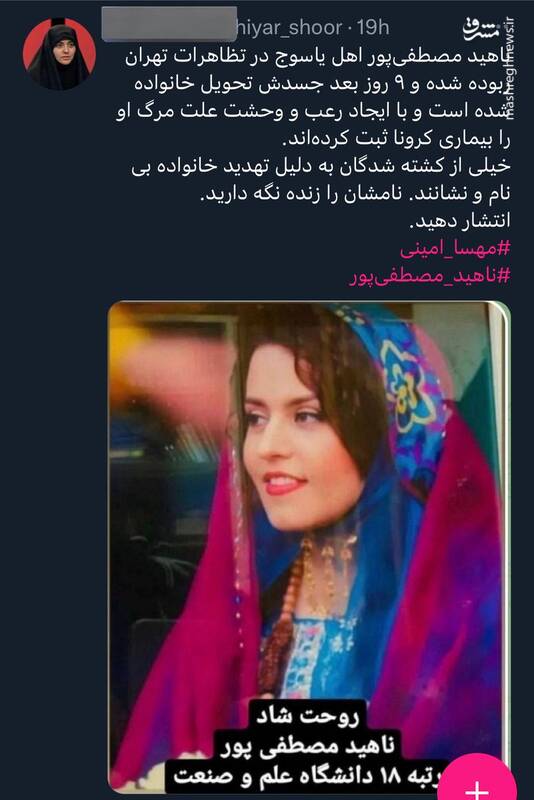 به گزارش مجاهدت از مشرق، امروز در شبکههای اجتماعی تعدادی از کاربران عکسی از ناهید(زهرا) مصطفی پور منتشر کردند و در توضیحات آن نوشتند که این زن در اغتشاشات کشته شده است.