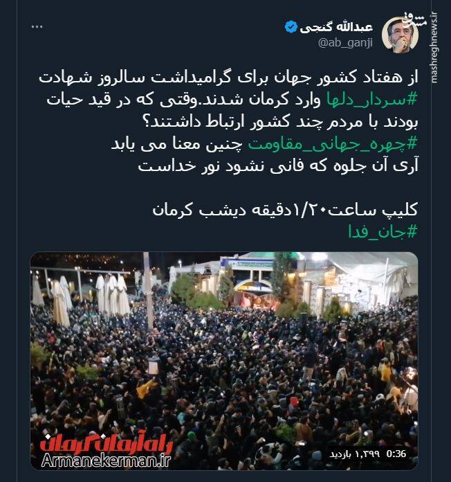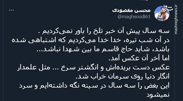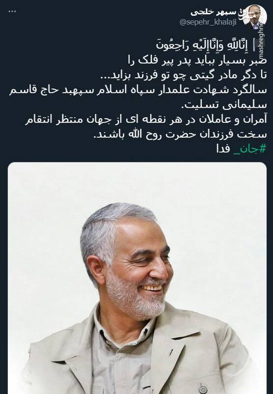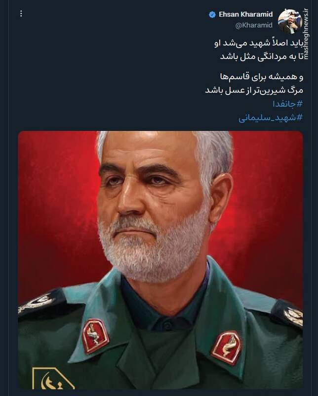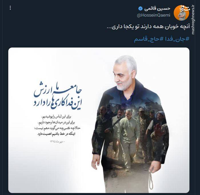 به گزارش مجاهدت از مشرق، بسیاری از چهره های برجسته فرهنگی و سیاسی کشور در شبکه های اجتماعی خود، سالروز شهادت حاج قاسم سلیمانی را گرامی داشتند.