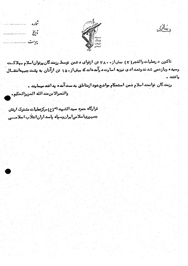 اطلاعیه شماره پنج قرارگاه حمزه سیدالشهداء (ع)