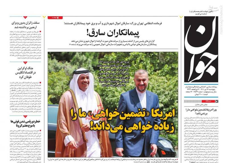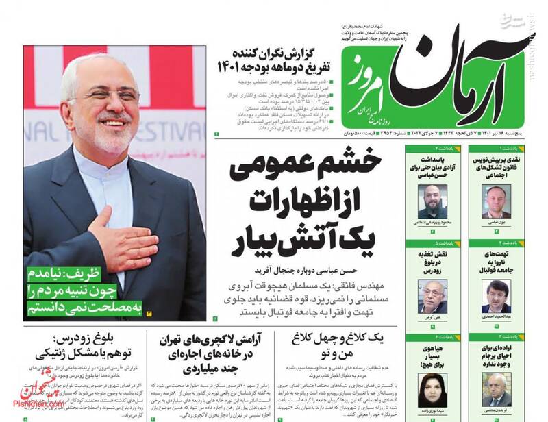 سرویس سیاست مشرق- در میان انبوهی از گزارشها و تیترهای خبری، در یک بسته کامل بانام «ویژههای مشرق» شمارا در جریان مسائل مهم و اثرگذار از نگاه روزنامههای کشور قرار میدهیم. در این ویژهنامه، نگاهی به آخرین مواضع جناحهای سیاسی و تحولات مهم داخلی، خارجی، اوضاع اقتصادی و اجتماعی کشور انداخته میشود که مخاطبان بامطالعه آن به رهیافتهای مهم، نکات و تأملات از سیر وقایع اثرگذار دست خواهند یافت، در این بخش با ما همراه باشید.