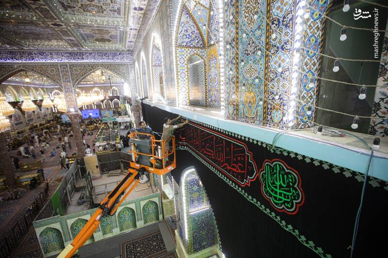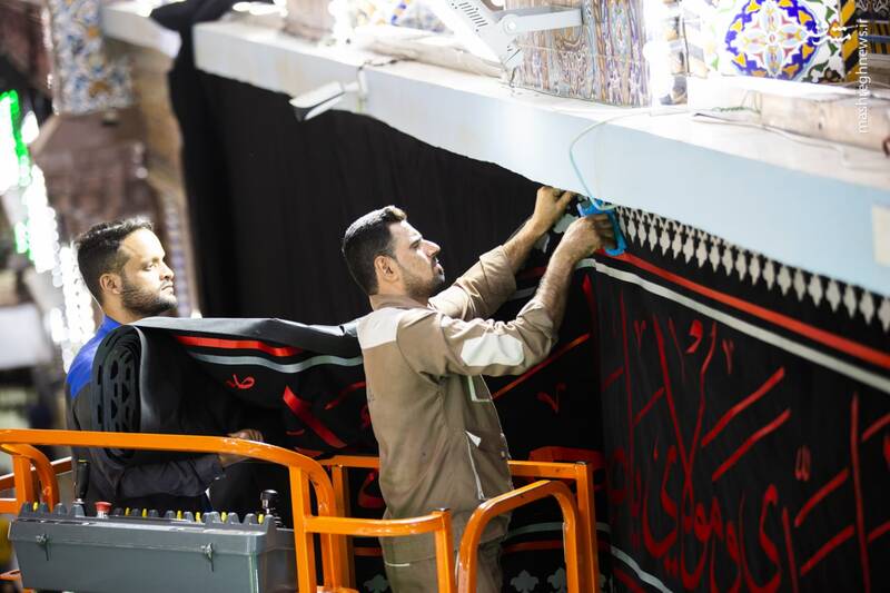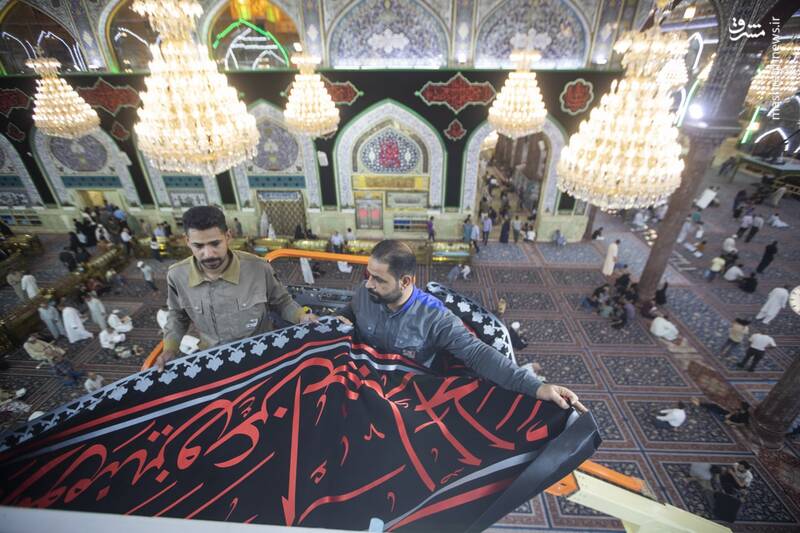 در آستانه حلول ماه محرم الحرام خادمان حرم حضرت امام حسین علیه السلام سیاه پوشان صحن های مطهر را آغاز کردند.