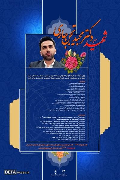 در این پوستر افتخارات و اختراعات شهید «مجید تجن جاری» به شرح ذیل گنجانده شده هست.
